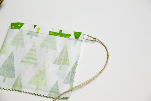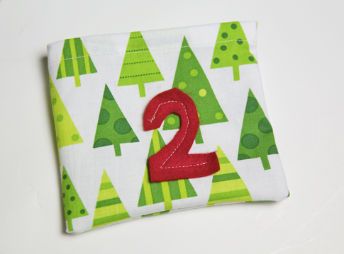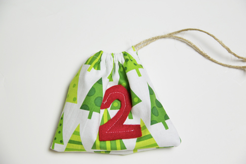 That’s pretty much it! Now all you have to do is attach to one long piece of twine by tying the ends of twine in a knot and threading it onto the longer piece. Do this with all the pouches, putting them in order. I think this project would also look cute on a big tree branch or an old yard stick…there are many possibilities!