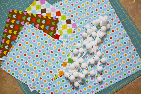 April 16, 2012Hello again! It’s Morgan is here from Sweet Stitches. I am here again to share with you this super fun pillow. Trimmed with pom poms and made with bright, happy fabric, this pillow is sure to make you giddy just looking at it!