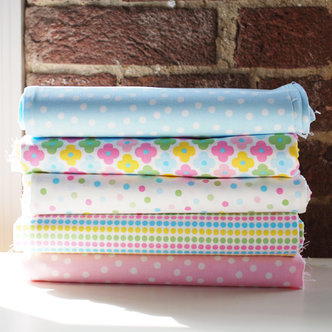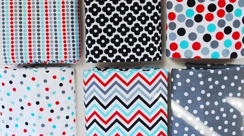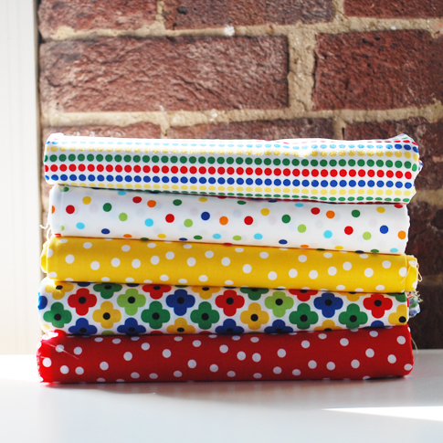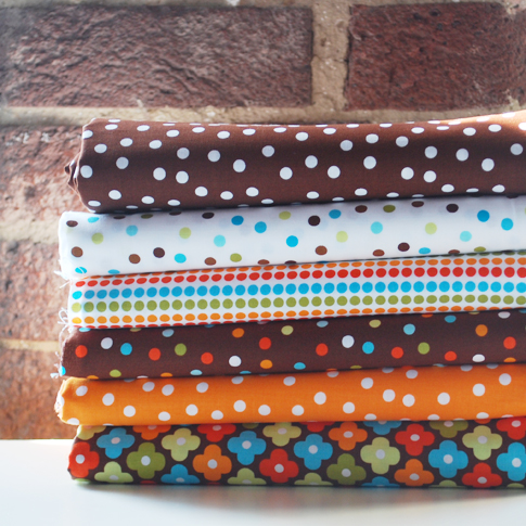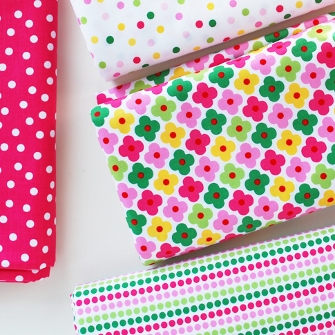 I’m so happy to introduce (insert drumroll) the new additions to Remix!  There are a total of 37 new prints/colors. Full of simple designs in lots of yummy colors. My love of bold colors continues with these new additions. We also added some new color ways. New prints, such as the scattered dots (inspired by confetti) and bold graphic flowers, are some of my favorites.  I also found a way to incorporate my love of stripes with the dotted-stripe print. I have so many sewing projects in mind with these new prints, some already in the works. These fabrics starts shipping to stores in November. But, some stores already have them listed online (see here and here).